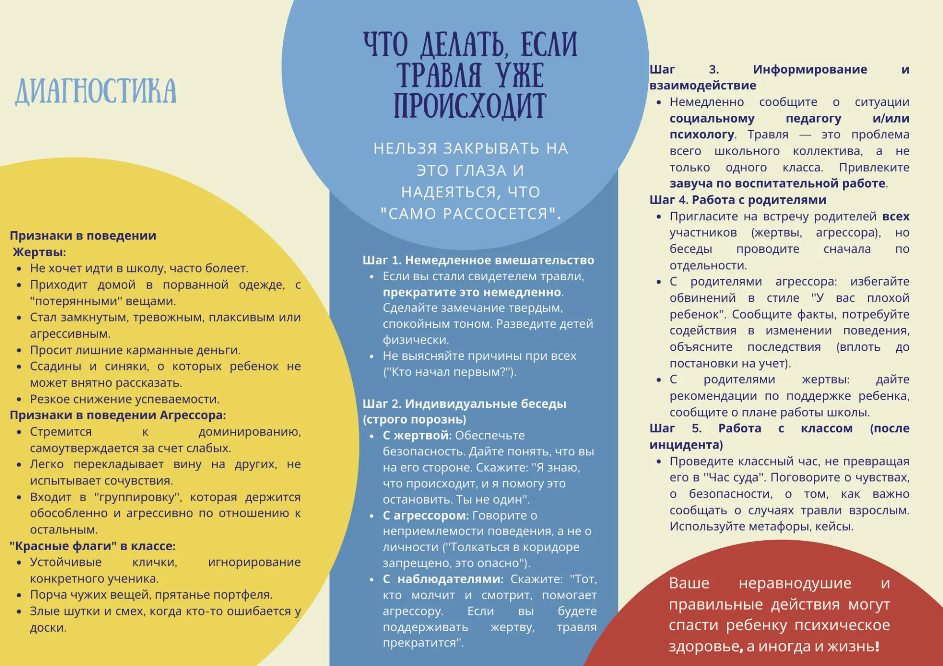 Алгоритм действий в школе в ситуации травли несовершеннолетнего